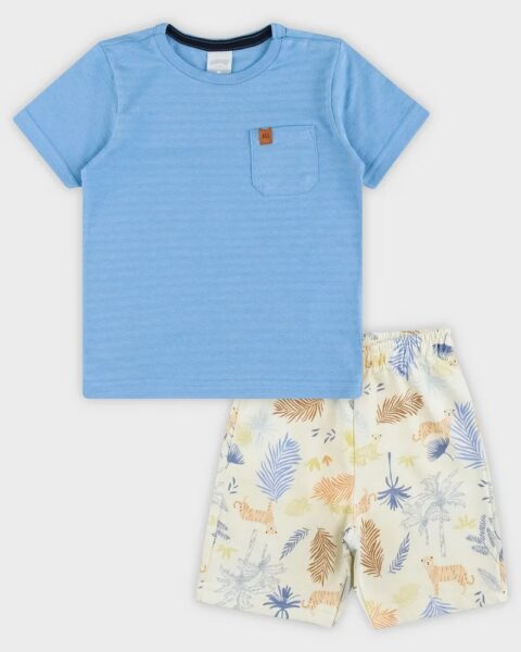 Conjunto Camiseta Azul Claro/ Bermuda Estampado zoo
