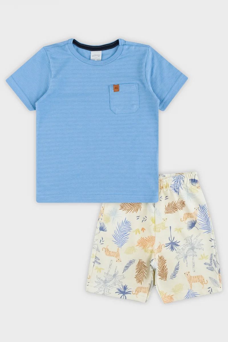 Camiseta de mangas curtas em malha confortável e shorts em tecido leve com estampa camuflada. Demais, né?